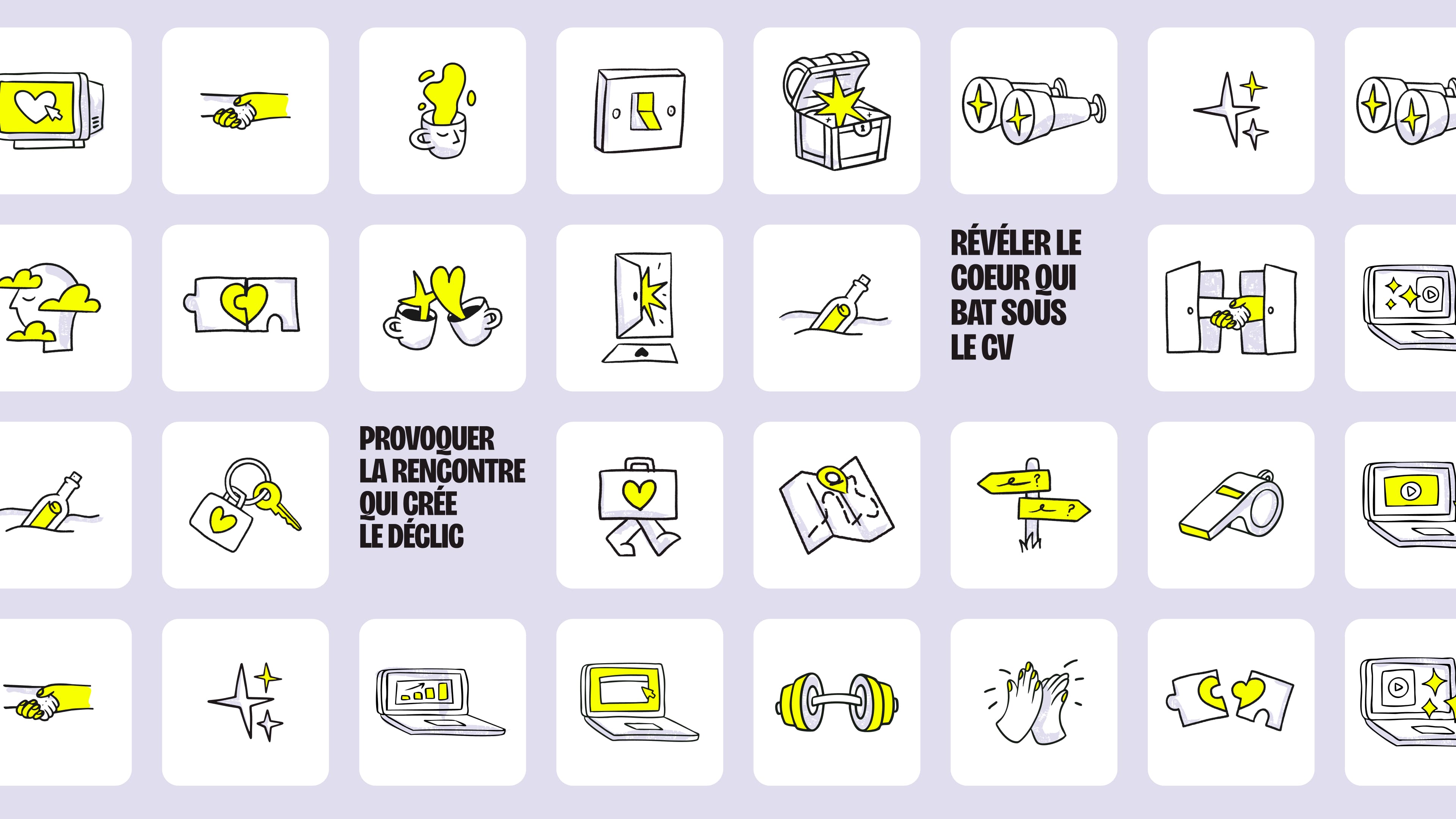 Nous avons livré à Chance un ensemble complet d’outils pour incarner et déployer sa nouvelle identité visuelle sur tous les points de contact. Un brandbook sur mesure rassemble l’ensemble des éléments de marque : logo, typographies, couleurs, usages et principes d’expression. Pour permettre une appropriation concrète, nous avons également réalisé des projections photo, une série d’illustrations sur-mesure, un moodboard web ainsi qu’un module de motion design pour animer la marque dans ses supports digitaux. À cela s’ajoutent des livrables prêts à l’emploi : bannière LinkedIn, posts Instagram, et un template de présentation pour assurer la cohérence de toutes les communications internes et externes.